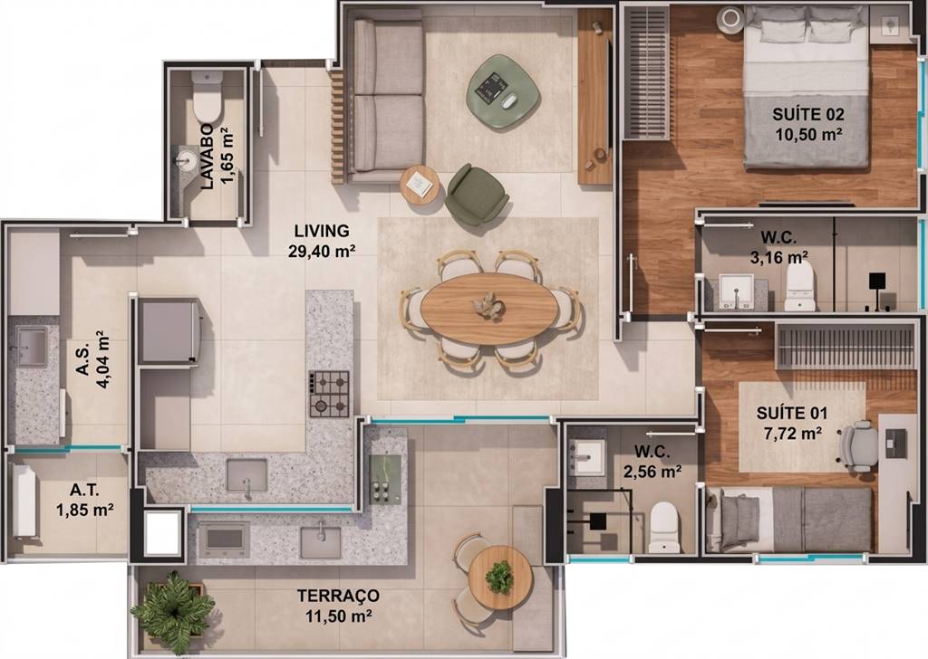 Área Útil80,02m²