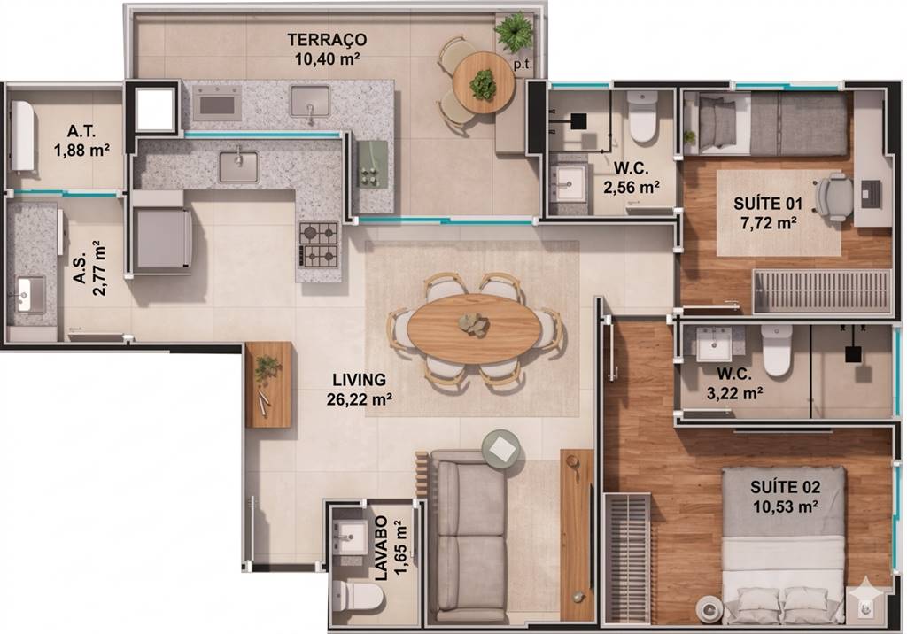 Área Útil75,73m²